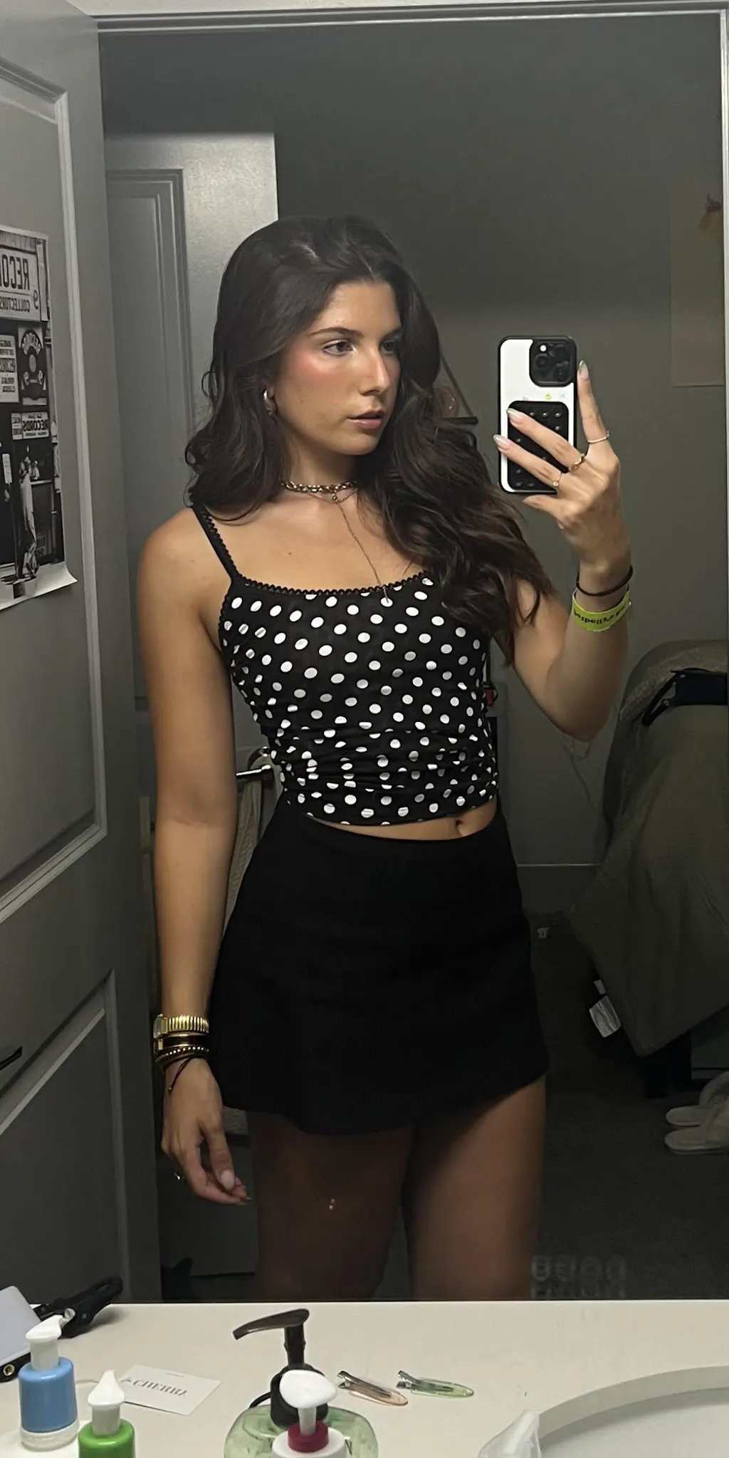 the cutest b&w polka dot cami top <3