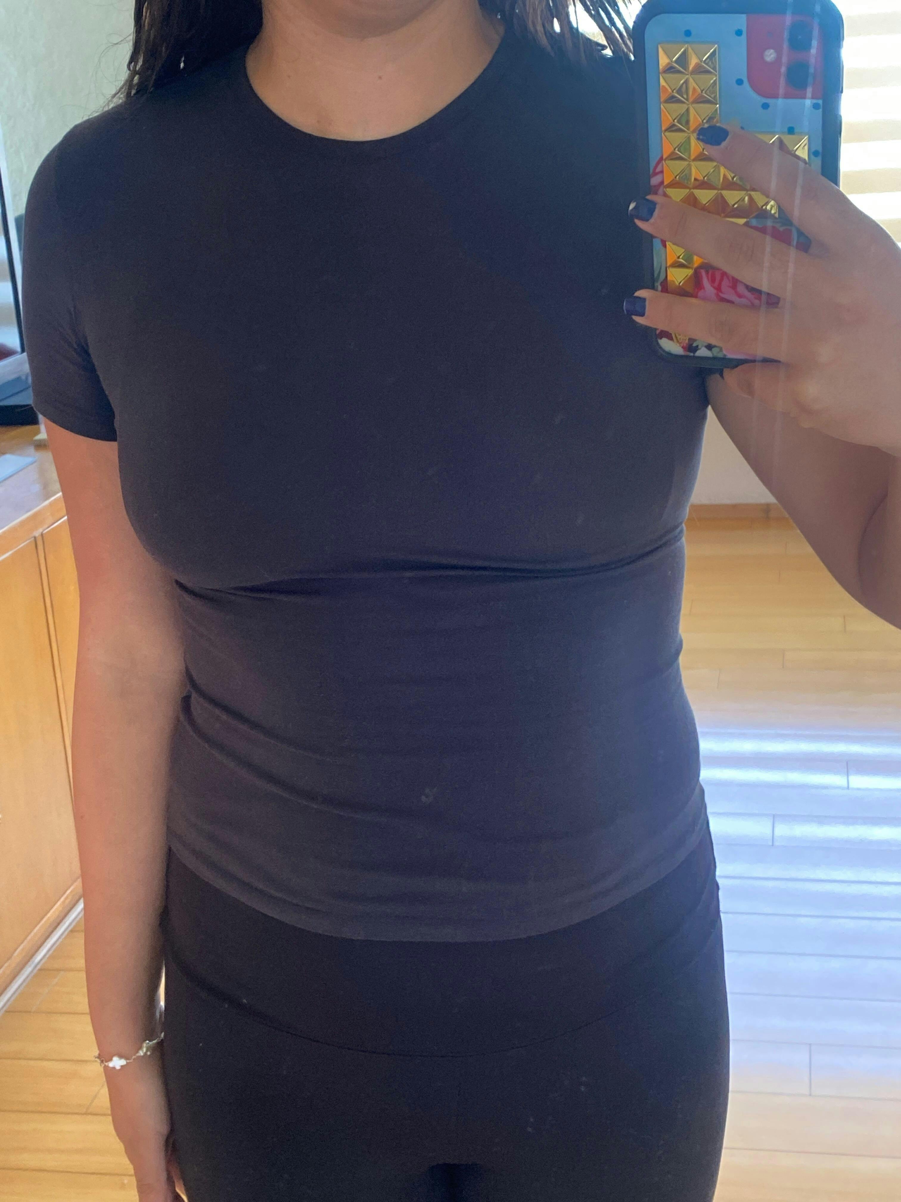 New favorite black tee. Somewhere in between the material of skims Cotton jersey and skims fits everybody, which is my perfect middle!! Insane for the price<333